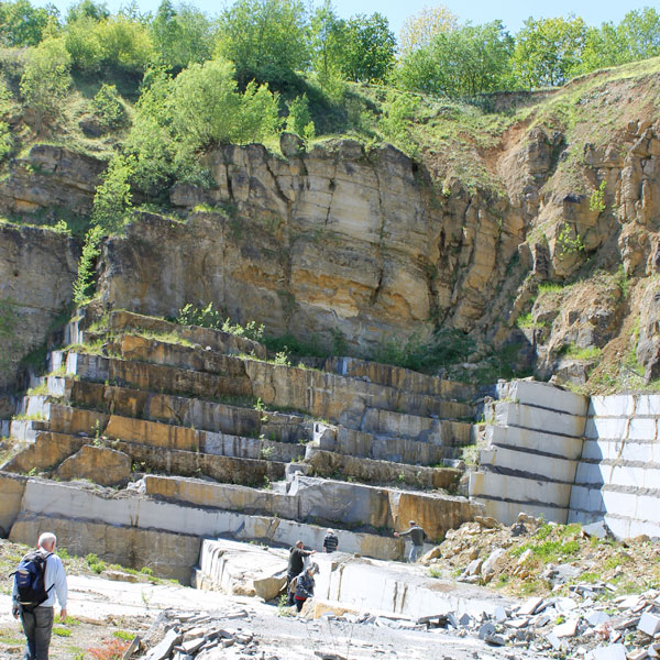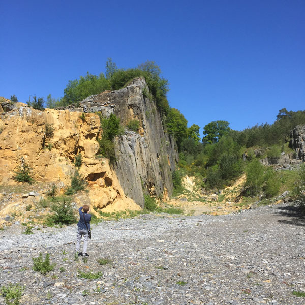 De volgende stop was een arduingroeve (verstopt in het bos) die we helemaal tot onderin konden bezoeken. Imposant om te zien welke enorme blokken arduin er uitgezaagd zijn.