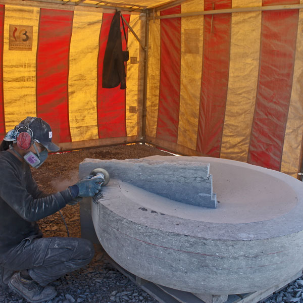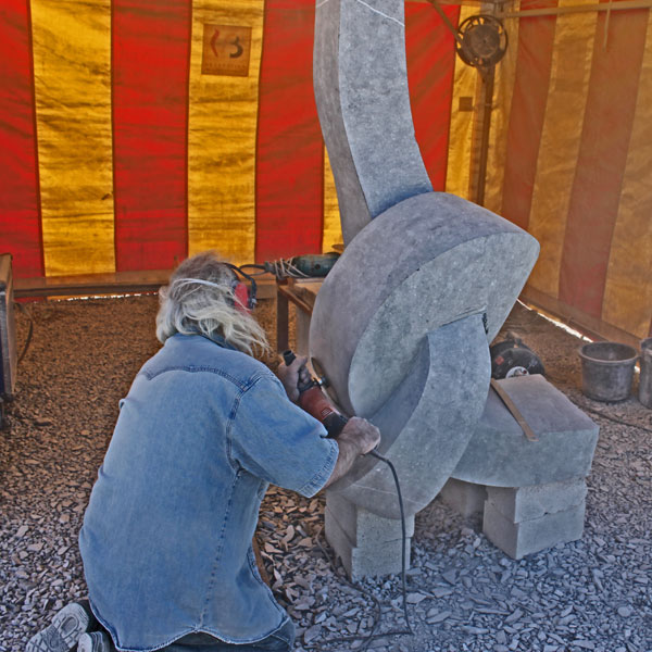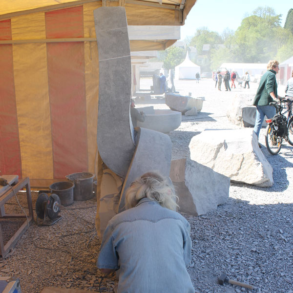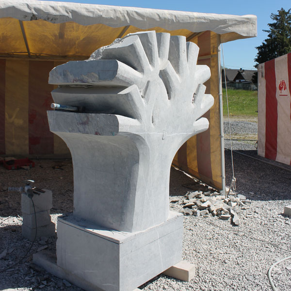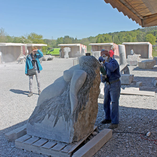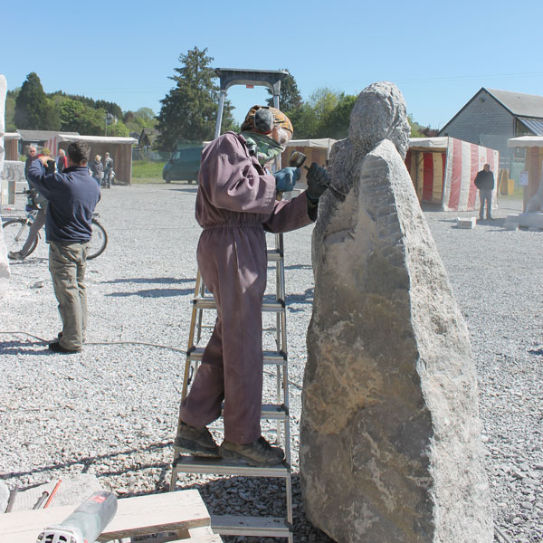 Vervolgens brachten we een bezoek aan het Symposion International de Sculpture de Durbuy (in het parc Juliénas in Barvaux sur Ourthe). De beeldhouwers waren twee weken bezig, we konden dus het ontstaan van de beelden van heel dichtbij meemaken.