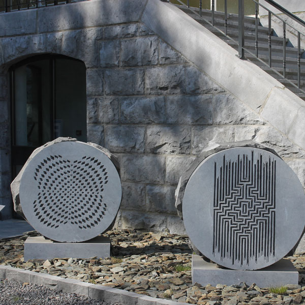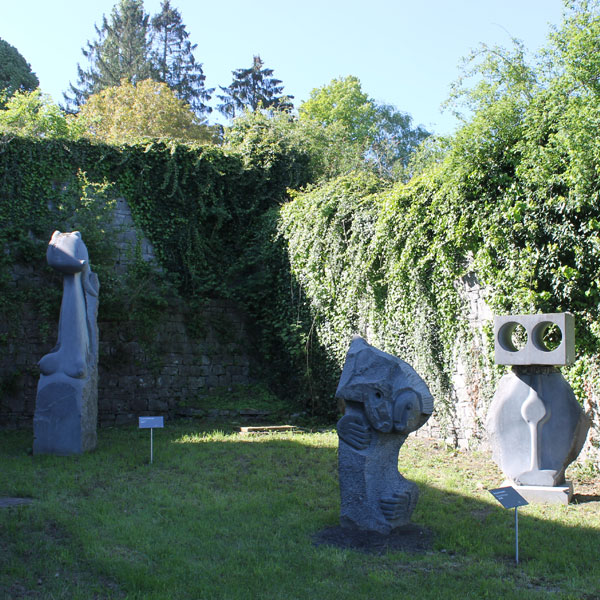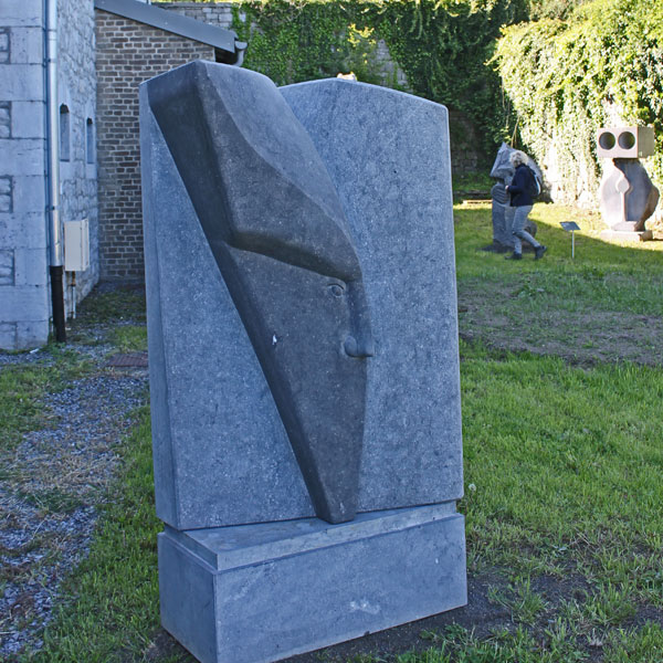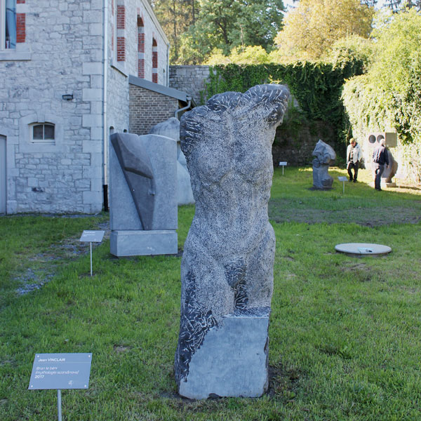 Het steenmuseum in Sprimont met de beelden van de eerdere beeldensymposia. Helaas was het steenmuseum zelf nog gesloten. Het gebouw is gerenoveerd, maar het wachten is nu op het geld voor de inrichting. Door een gelukkig toeval mochten we wel binnen kijken in de gerenoveerde hal