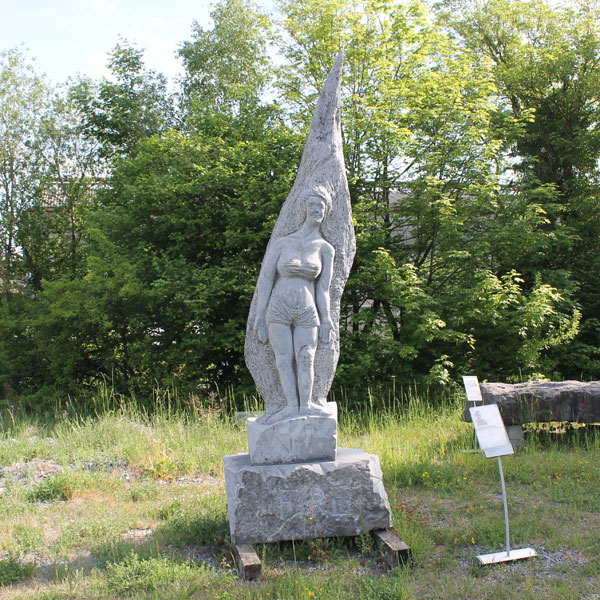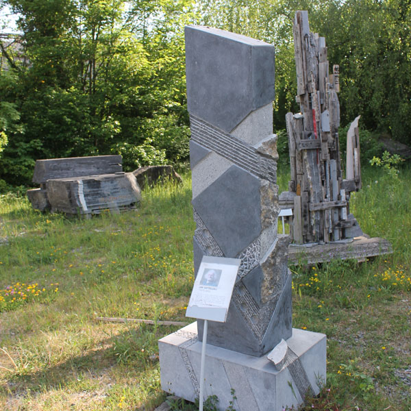 Het steenmuseum in Sprimont met de beelden van de eerdere beeldensymposia. Helaas was het steenmuseum zelf nog gesloten. Het gebouw is gerenoveerd, maar het wachten is nu op het geld voor de inrichting.