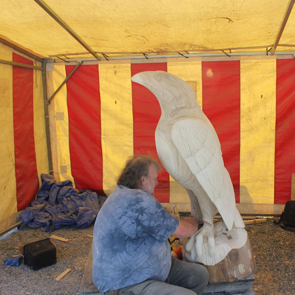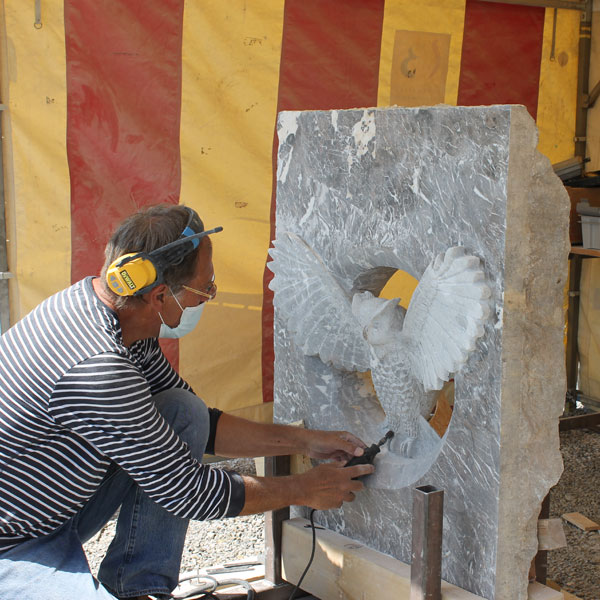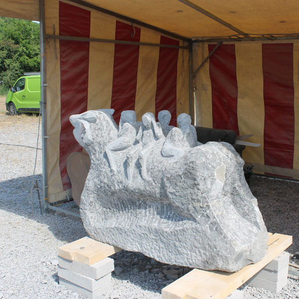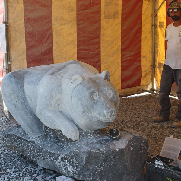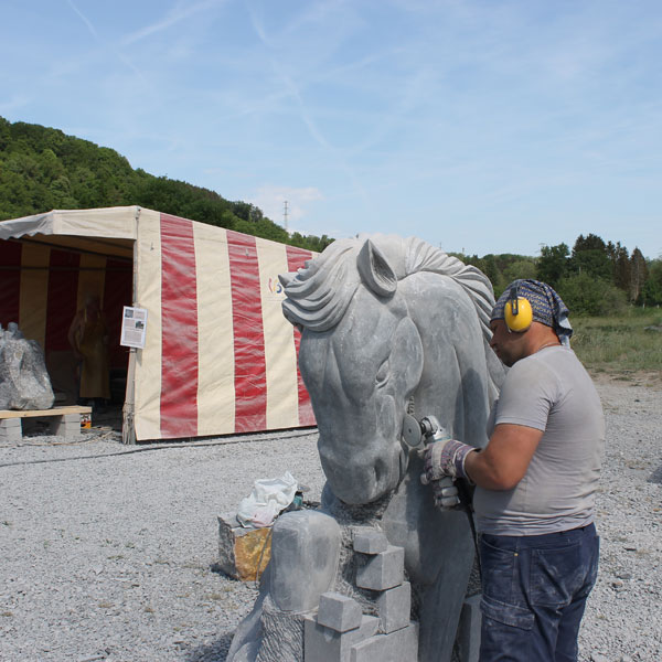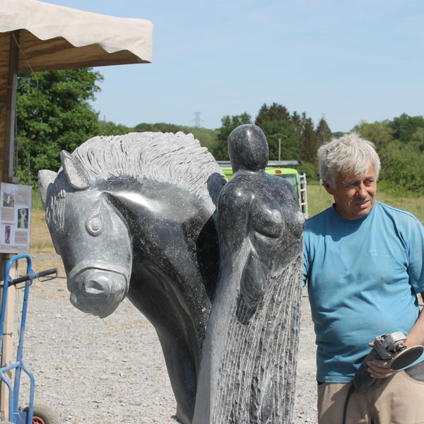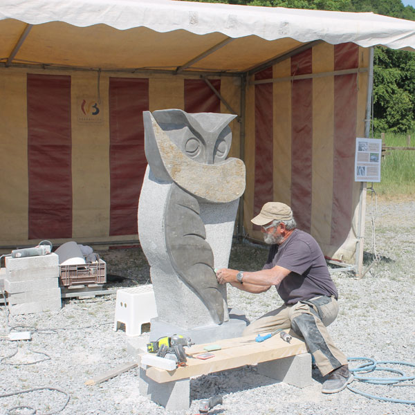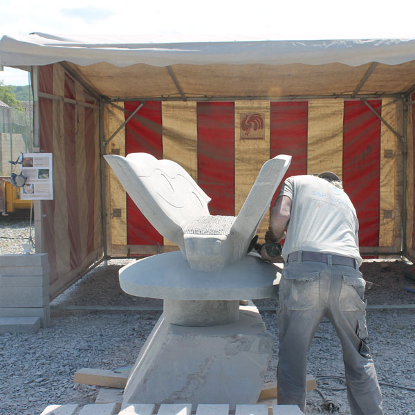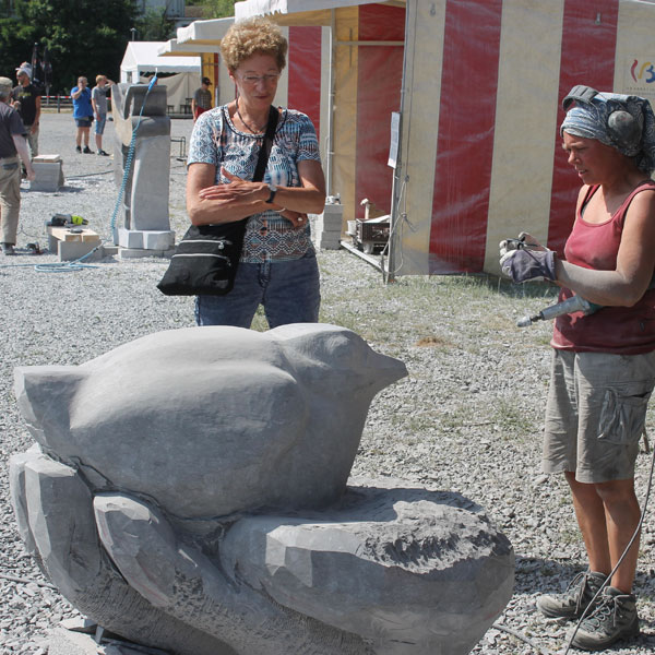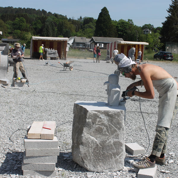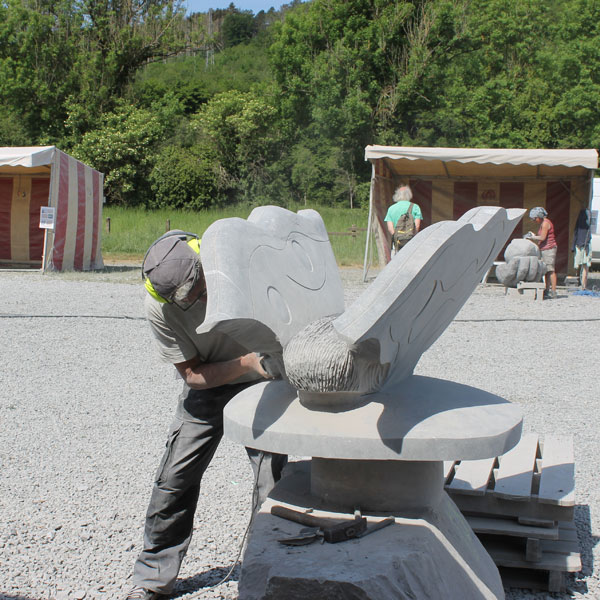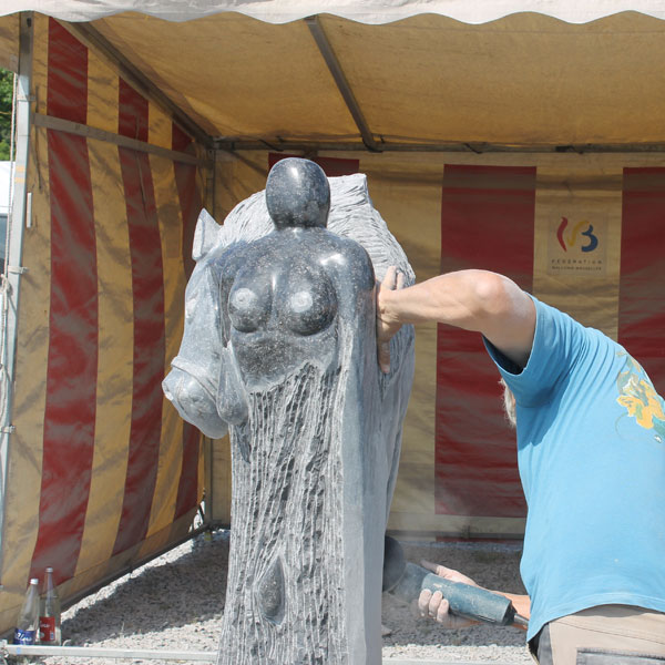Vervolgens brachten we een bezoek aan het Symposion International de Sculpture de Durbuy (in het parc Juliénas in Barvaux sur Ourthe). De beeldhouwers waren twee weken bezig, we konden dus het ontstaan van de beelden van heel dichtbij meemaken.