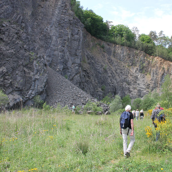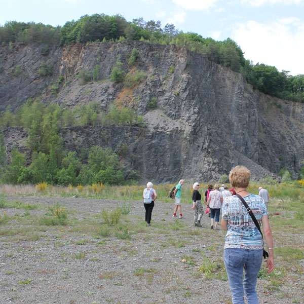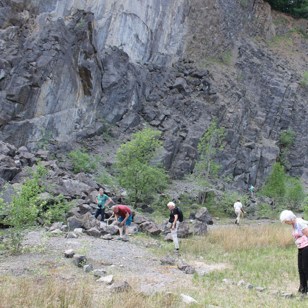 De volgende stop was een oude arduingroeve die we helemaal tot onderin konden bezoeken. Imposant om te zien wat een enorme hoeveelheid arduin er uitgezaagd zijn.