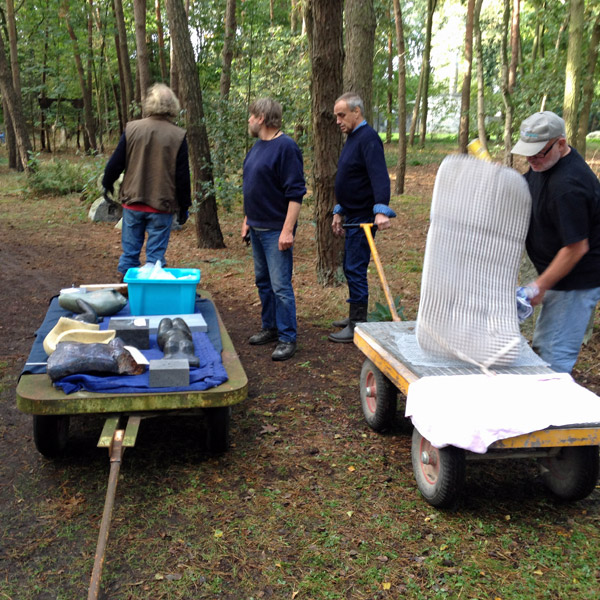 Door een flinke groep beeldhouwers is in de dagen (en weken) voor de expositie hard gewerkt om alles op orde te hebben, de inkopen zijn gedaan (als je veel bezoekers krijgt, heb je ook veel nodig) en de beelden zijn vrijdags voorafgaand aan de expositie op de sokkels geplaatst.