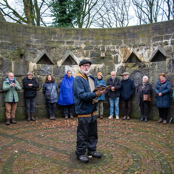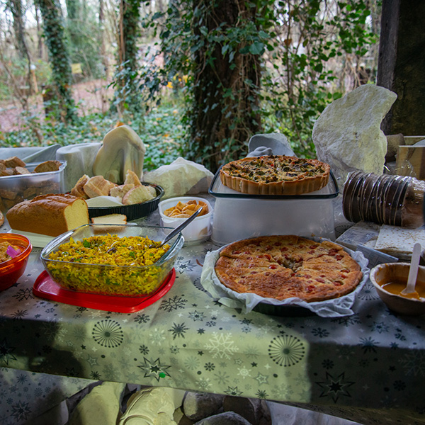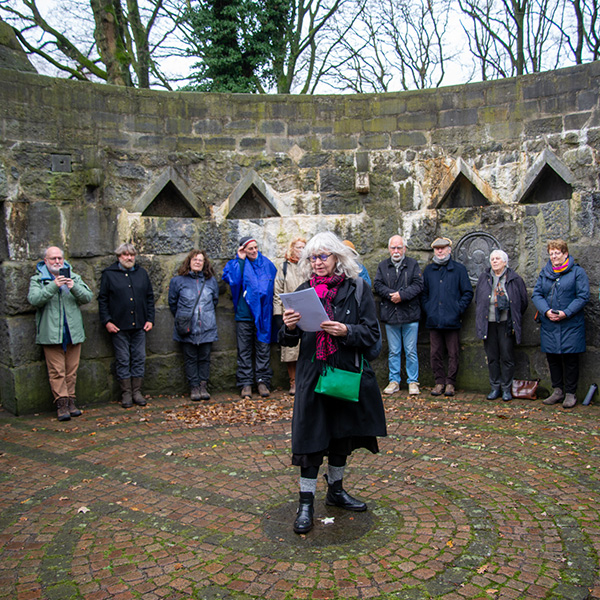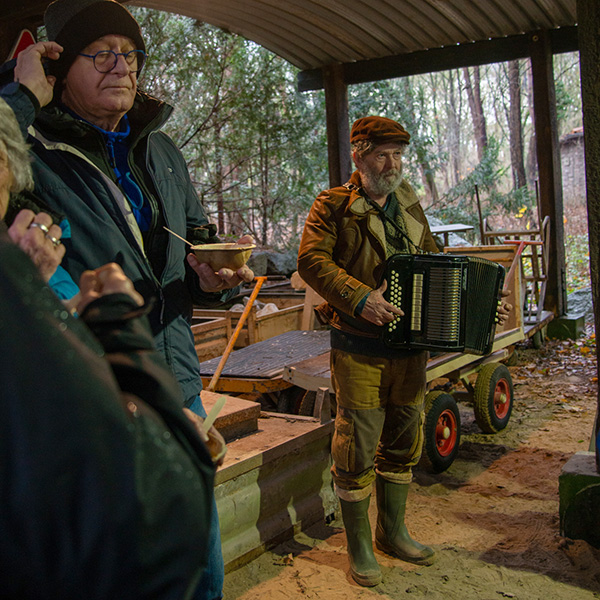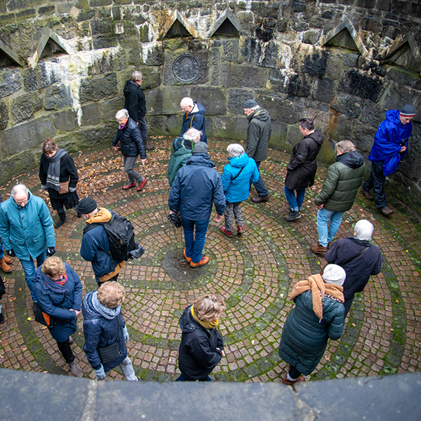 Na een muzikaal onthaal van Marianne Wynen en René Krol (Folkzien) en ontvangst met koffie en thee, was er rond half twaalf was er de mogelijkheid voor wie dat wou om het labyrint te lopen.